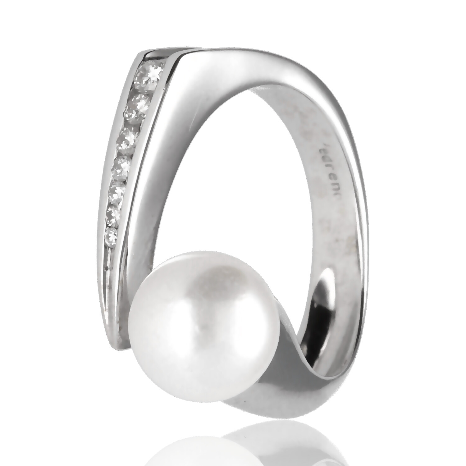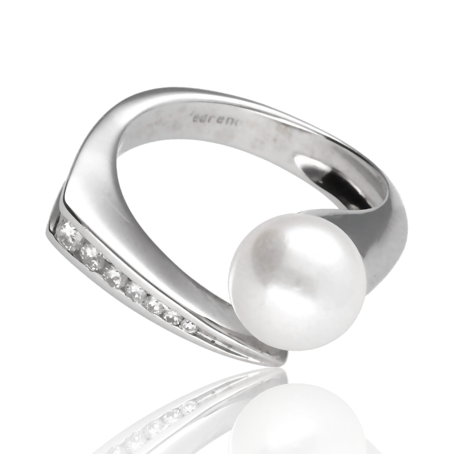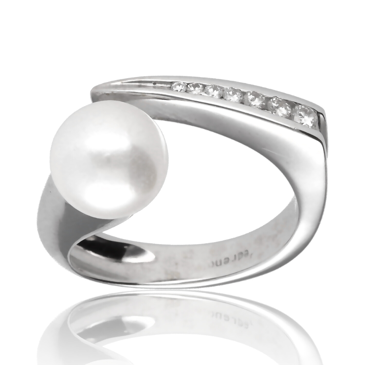 Anillo Iradella oro blanco 1ª ley 18K con diamantes y perla cultivada